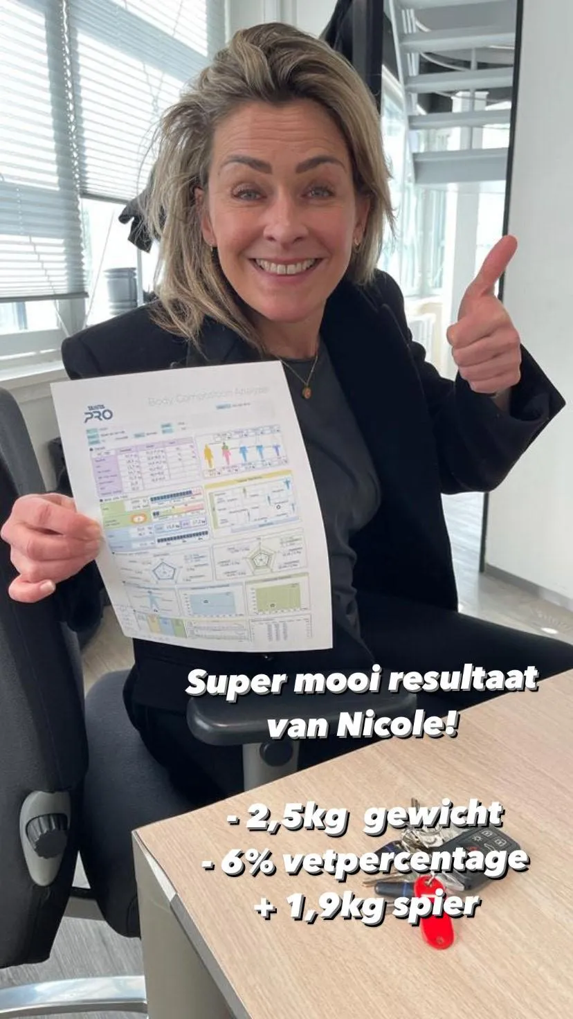 Jouw resultaten houden we bij door wekelijks een TANITA body-scan te doen. Waarmee wij inzicht geven op het gebied van vet%, spiermassa, viscerale vet, Hydratatie op cel-basis en overal gezonheidslevel.
